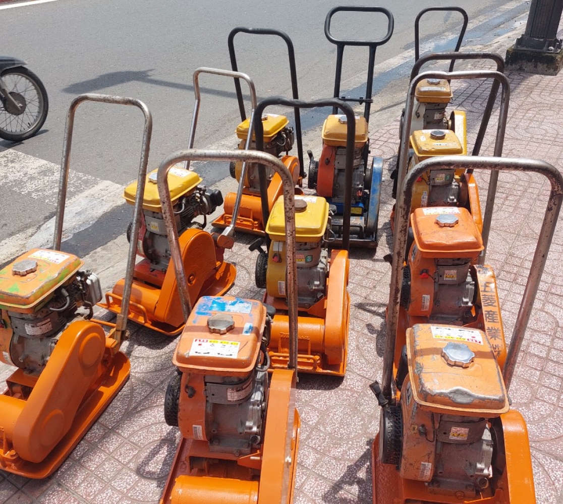 Máy đầm bàn cũ là các dòng máy đã qua sử dụng tại công trình hoặc được thanh lý từ đơn vị thi công, đơn vị cho thuê, hoặc máy nhập bãi từ Nhật Bản, Hàn Quốc. Dù không còn mới 100%, nhưng phần lớn các máy này vẫn có động cơ khỏe, lực đầm ổn định, khung sườn chắc chắn nếu được bảo dưỡng và kiểm tra kỹ lưỡng.